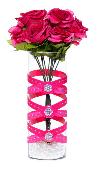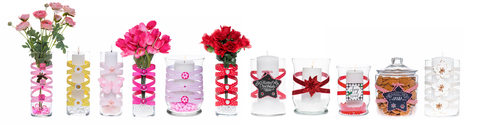 View Wrappings & EmbellishmentsDo you already have enough glassware? Our wrappings are made for popular glassware styles – 10” bud vase, 9” hurricane, and 10” cylinder.
