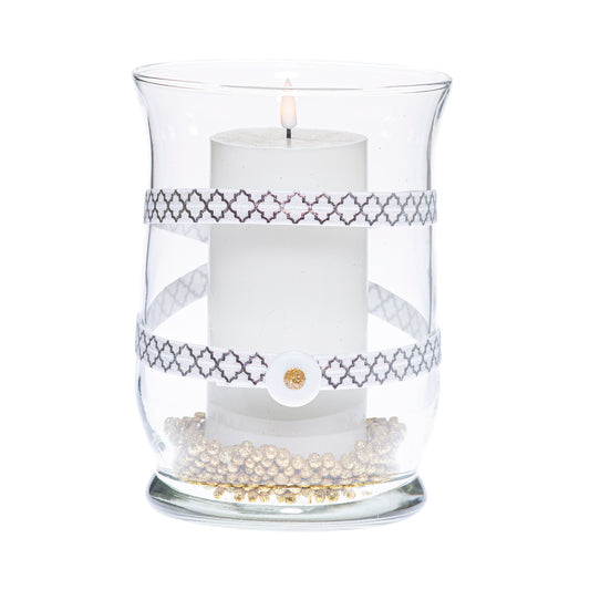 5.5" x 8" Hurricane White Silver Quatrefoil 1X 2 Large Glitter Silver Gold Snowflake Holiday Collection Complete Set FREE SHIPPING