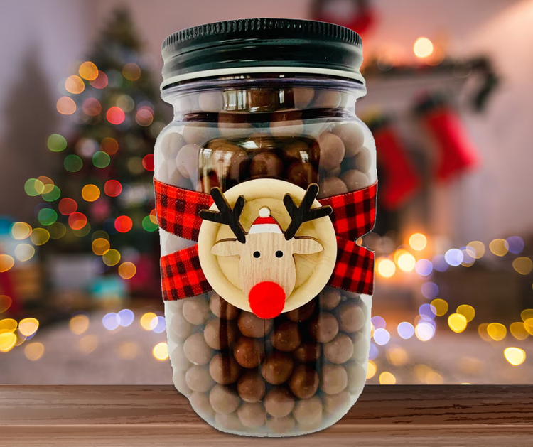 Large Jar Red Black Buffalo Plaid Wood Rudolph Reindeer Stocking Stuffer Children's Table Party Candy Favor FREE SHIPPING