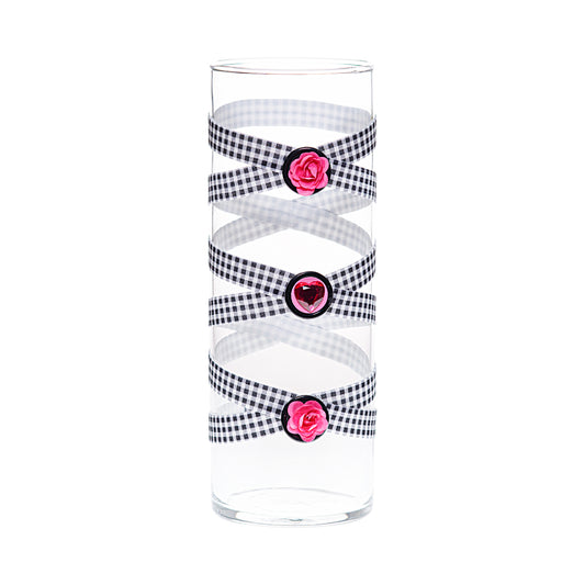 3.5" x 9.5" Vase Black White Buffalo Plaid 5X 6 Mother's Valentine's Day Floral Love Pink Roses Heart Medium May Annual Collection Complete Set FREE SHIPPING