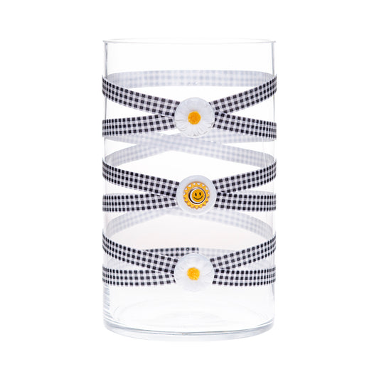 3.5" x 9.5" Vase Black White Buffalo Plaid 5X 6 White Daisies Smiley Medium Summer Love Floral June Annual Collection Complete Set FREE SHIPPING