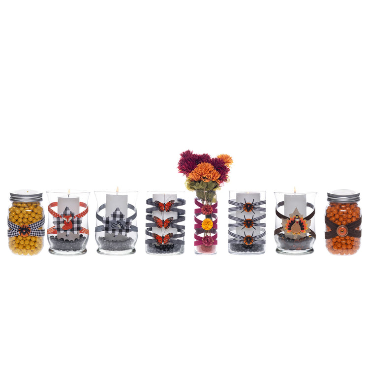 All listings are for Complete Sets only, including glassware, elastic wrapping, and an embellishment set. Candles, flowers, and other filler shown are for illustration purposes only and are not included.