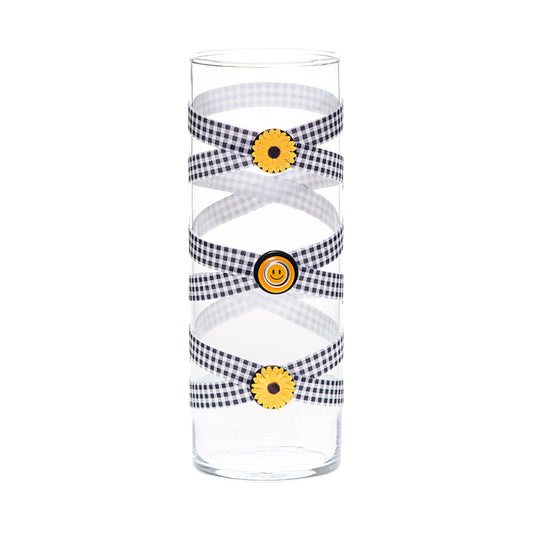 3.5" x 9.5" Vase Black White Buffalo Plaid 5X 6 Black Sunflowers Smiley Medium Summer Autumn Fall Love Floral Farmer's Market Flowers September Annual Collection Collection Complete Set FREE SHIPPING