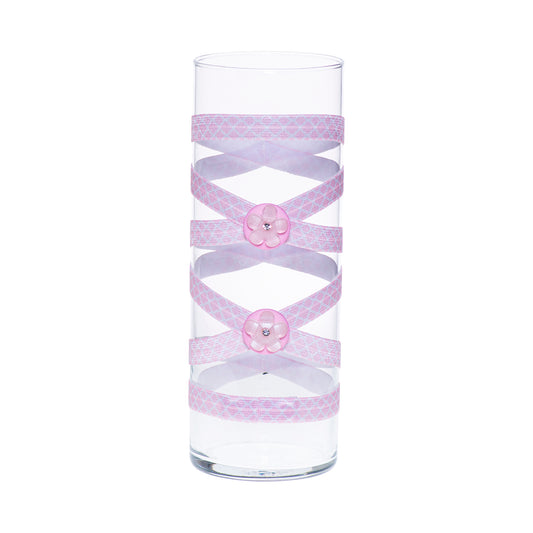 3.5" x 9.5" Vase Pink White Quatrefoil 5X 5 Pink White Gem Flowers Floral Mother's Valentine's Day Love Collection Complete Set FREE SHIPPING