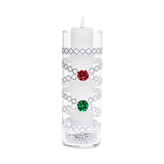 3.5" x 9.5" Vase White Silver Quatrefoil 5X 6 Red Green Shiny Bows Holiday Collection Complete Set FREE SHIPPING