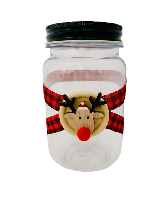 Large Jar Red Black Buffalo Plaid Wood Rudolph Reindeer Stocking Stuffer Children's Table Party Candy Favor FREE SHIPPING