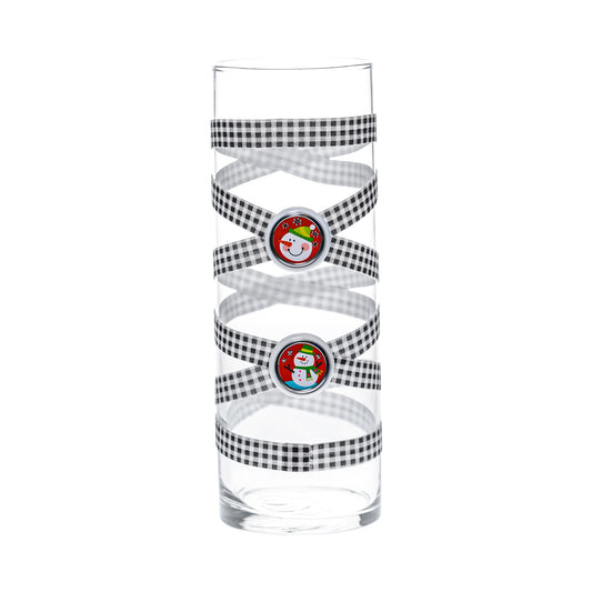 3.5" x 9.5" Vase Black White Buffalo Plaid 5X 5 Glitter Snowflakes Medium January Holiday Annual Collection Complete Set FREE SHIPPING