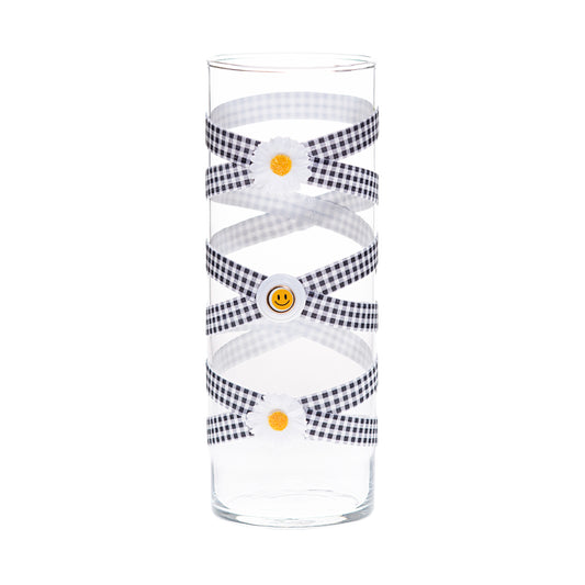 3.5" x 9.5" Vase Black White Buffalo Plaid 5X 6 White Daisies Smiley Medium Summer Love Floral June Annual Collection Complete Set FREE SHIPPING